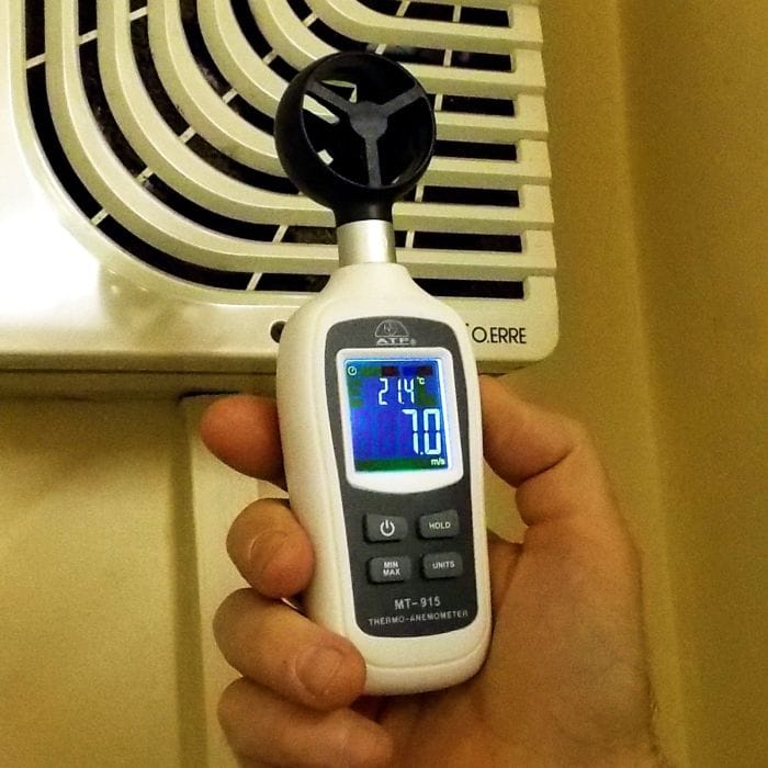- Shows airflow speed and air temperature together