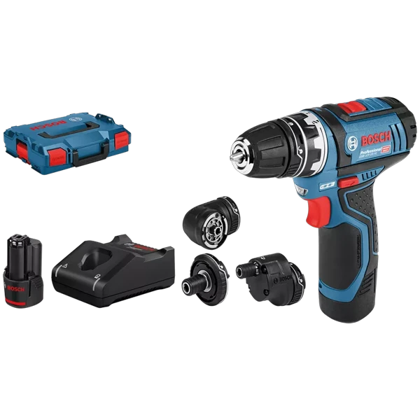 Bosch GSR 12V‑15 FC FlexiClick Drill/Driver Kit is built for professionals who need reliable cordless performance every day. The brushless motor keeps speed constant under load and eliminates carbon‑brush maintenance. Compact proportions lower fatigue and make overhead or cabinet work simple & a durable gearbox transmits torque efficiently so tasks finish faster.