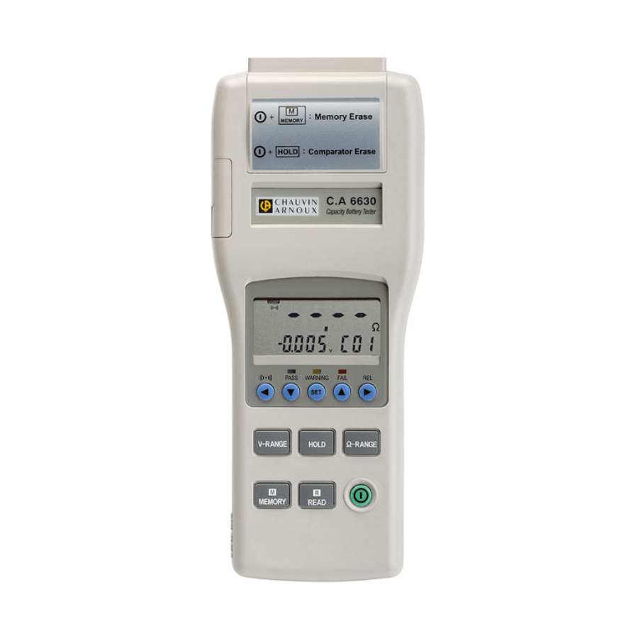 Chauvin Arnoux CA6630 Battery Capacity Tester supports routine battery maintenance with clear, direct results that help prevent costly failures. It measures internal resistance and open-circuit voltage with steady accuracy, and it always displays readings in a way that is easy to understand. The instrument provides reliable PASS, WARNING or FAIL status so users can act quickly and confidently.
