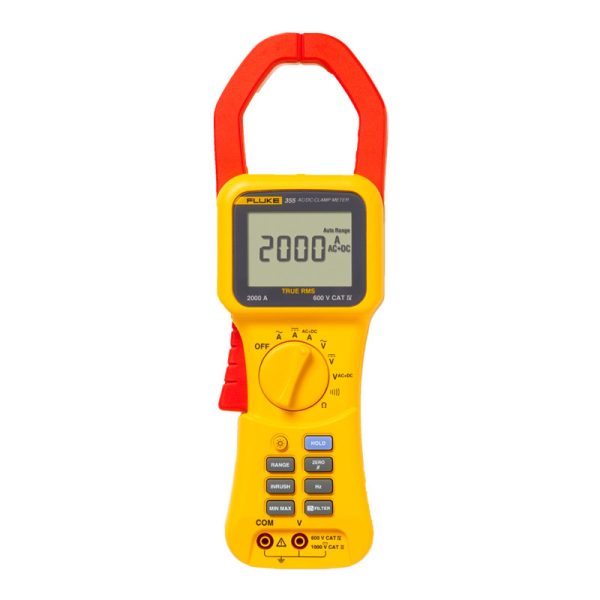 The Fluke 355 True RMS Clamp Meter is designed for safe and reliable testing in demanding environments. It provides accurate current measurement up to 2000 A AC and DC, making it suitable for heavy-duty electrical work. With a rugged build and wide jaw opening, it delivers performance while ensuring ease of use in the field.