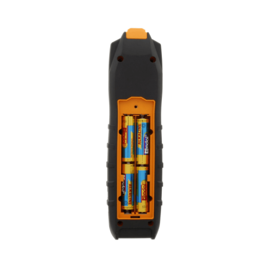 The transmitter features a built-in continuity tester, removing the need for separate equipment when diagnosing wiring faults. It can detect voltage levels from 24-600 V AC and 12-600 V DC, while also indicating DC polarity. A magnetic hook strap clip (strap sold separately) and an integrated kickstand allow hands-free use of the transmitter. Industrial-grade over-moulding enhances grip and drop protection for both the receiver and transmitter, enabling them to withstand falls of up to 2 metres.