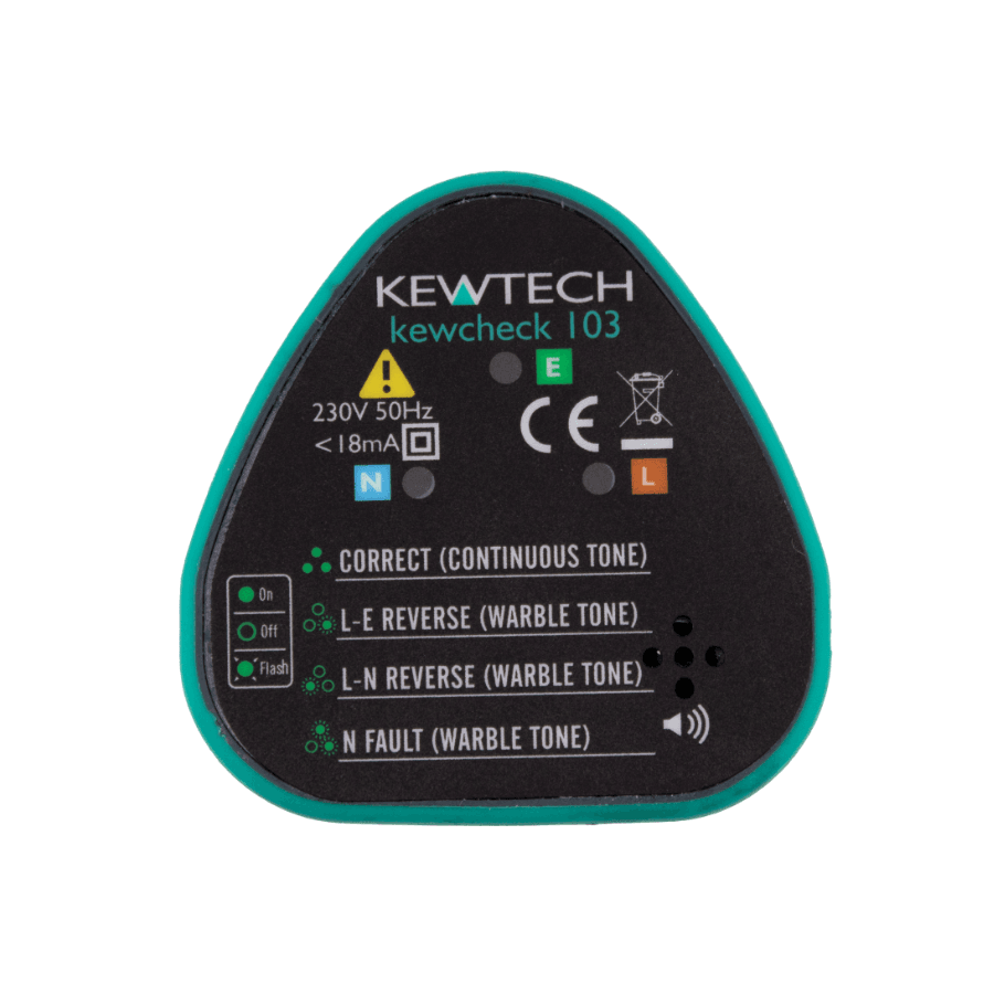 With its clear LED lights and dual-tone audible alerts, the Kewtech KEWCHECK103 delivers instant feedback on socket status. The continuous tone confirms safe wiring, while a distinct warbling tone warns of any detected faults. This makes it easier to diagnose issues quickly, without needing to interpret complex codes or displays.