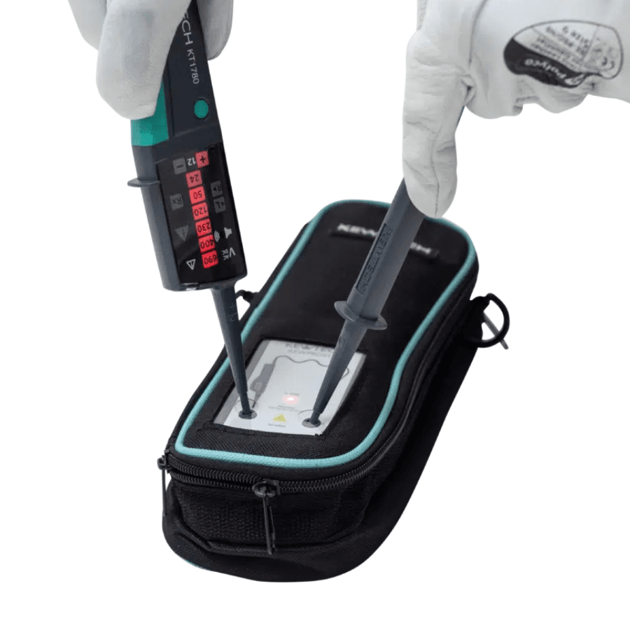 Kewtech KEWISO2 comes in a durable carry case with space for each item. The proving unit can be used without removal, which saves time. Together, these features improve workflow and reduce delays.