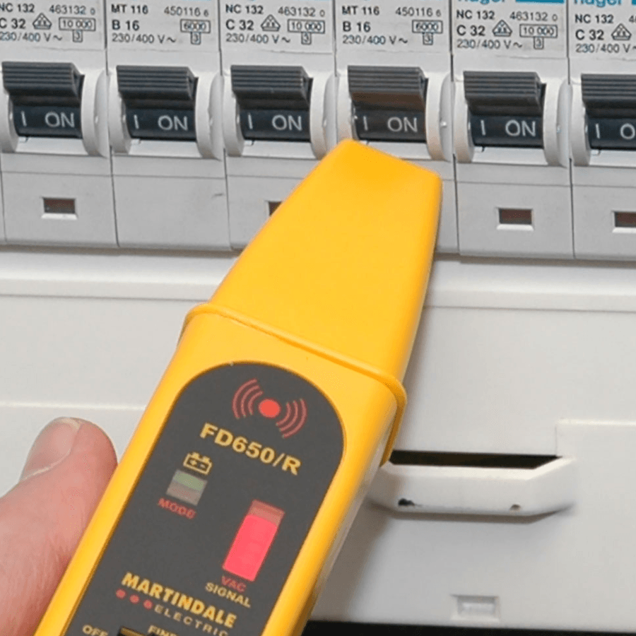 The Martindale FD550 Fuse Finder Kit makes fuse and breaker identification quick, safe and reliable. The kit combines a transmitter and a digital receiver, allowing users to trace circuits without the need to switch off power. With both audible and LED indicators, it ensures the right breaker is located with confidence.