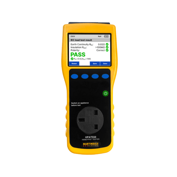 The Martindale HPAT550 Rechargeable PAT Tester is designed to simplify routine appliance testing with minimal input. Built for portability and efficiency, it allows engineers to complete safety checks with just one button press. Whether used in workshops or on-site, its clear PASS/FAIL colour display removes any confusion.