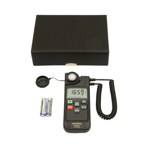 The Martindale LM192 Light Meter is a reliable tool designed to ensure lighting meets the optimal standards for workplaces and commercial spaces. Its robust construction and intuitive design make it ideal for various environments, offering precise measurements up to 200,000 lux with a resolution of 0.1 lux in the 200 lux range. The detachable light sensor ensures convenient and accurate readings, making it an essential device for lighting assessments.