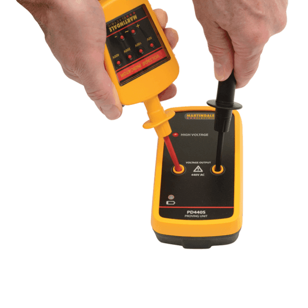The Martindale PD440S 440V AC Proving Unit ensures safe electrical work by delivering a reliable voltage output. It is a direct upgrade from the industry-standard PD440, designed to match the output requirements of voltage indicators such as the VI13800, MTL10, and MTL20 Drummond test lamps, and all other 440V testers. This unit guarantees precise functionality, offering instant test voltage for both high and low impedance devices, ensuring compliance with the Electricity at Work Regulations.