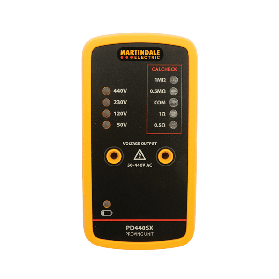 The Martindale PD440SX 440V AC Proving Unit is a vital tool for ensuring electrical safety. Designed to verify the correct operation of voltage indicators and test lamps, this proving unit helps meet the requirements of the Electricity at Work Regulations. With stepped voltage outputs and a unique CALCHECK function, it provides an extra level of confidence when using multifunction installation testers.