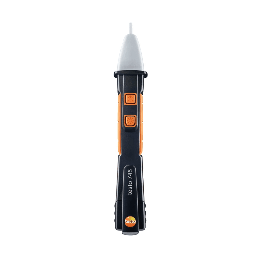 The Testo 745 Non-contact Voltage Tester is a practical tool for safe and efficient electrical testing. Designed to quickly identify AC voltage, it reacts to the presence of current with both a red flashing LED and an audible tone. This helps minimise the risk of accidental contact with live wires during initial fault checks.